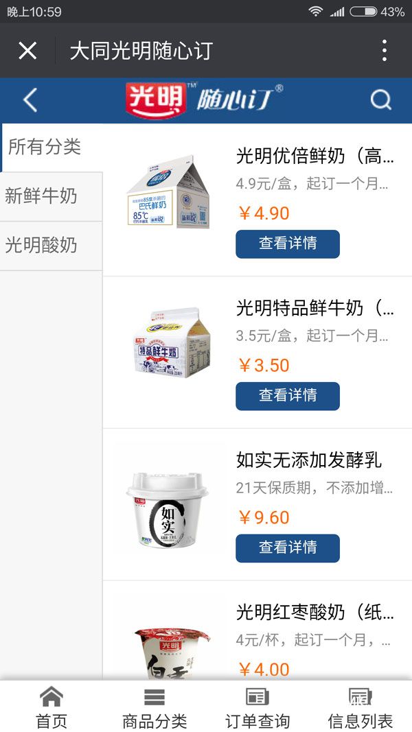 經(jīng)過緊張的開發(fā)和功能調(diào)試,近日,大同光明巴氏鮮奶隨心訂公眾平臺正式上線。