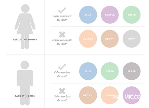 在女性用戶這邊,橙色也是相對(duì)不那么受歡迎的色彩,所以,如果你的客戶是女性的話,盡量避免這一點(diǎn)。