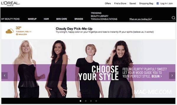 所以,如果你的設(shè)計(jì)是針對(duì)女性的,那么紫色會(huì)是一個(gè)相當(dāng)不錯(cuò)的選擇,因?yàn)樽仙谂允鼙娭衅毡槭軞g迎,但是對(duì)于多數(shù)男性而言,紫色并不太受歡迎。在下方的圖片中,紫色被運(yùn)用在巴黎歐萊雅的網(wǎng)頁(yè)中,效果非常不錯(cuò)。主體使用的黑白配色,黑色的頁(yè)頭頁(yè)腳看起來(lái)非常優(yōu)雅,紫色點(diǎn)綴其中,整體感非常不錯(cuò)。實(shí)際上他們的產(chǎn)品并不便宜,但是給人感覺(jué)比較高端。