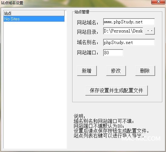 7、設(shè)置我們的站點(diǎn)信息,新增并保存設(shè)置并生成配置文件