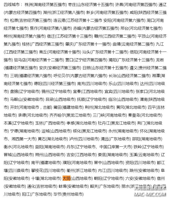 而在四線城市的末尾,將將就就的出現(xiàn)一個(gè)熟悉的名字:大同