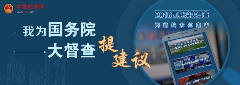 為貫徹落實(shí)李克強(qiáng)總理關(guān)于“開門搞督查”的重要指示精神,配合開展2018年國(guó)務(wù)院大督查,從7月10日至9月10日,國(guó)務(wù)院辦公廳開展“我為大督查提建議”活動(dòng),面向社會(huì)公開征集政策措施不落實(shí)、政府管理服務(wù)不到位、有關(guān)部門和單位不作為慢作為亂作為等問題線索以及相關(guān)意見建議。